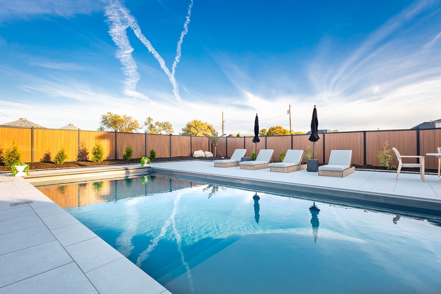 The VOGUE Collection is a dashing rectangular pool offering a dramatic splash pad that is over 10 feet wide.